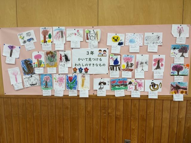 廊下などには、自分たちで調べたことを紹介するものがたくさん掲示してあります。3年生が一生懸命取り組んだという学習の足跡がみえてきますね!