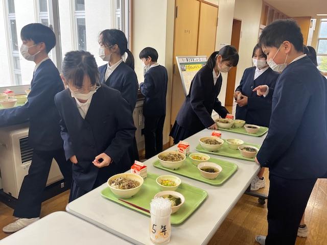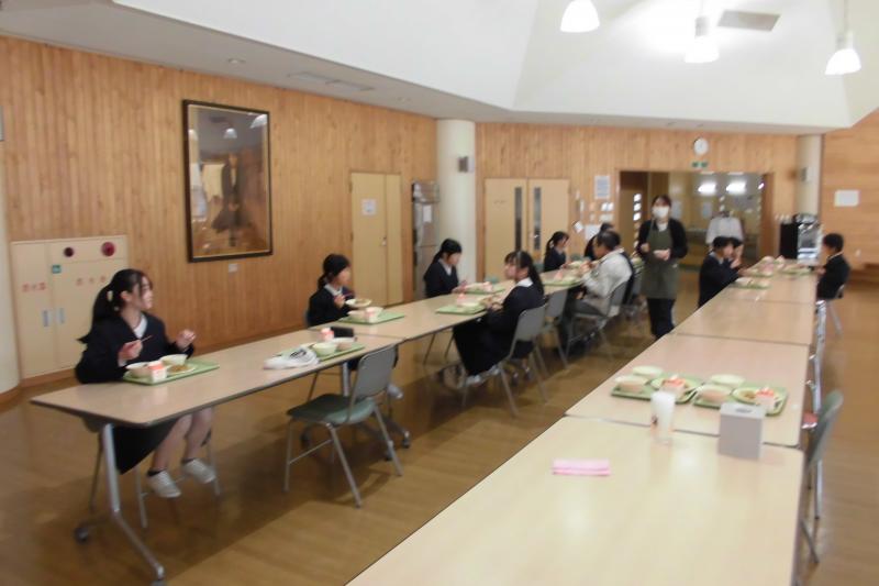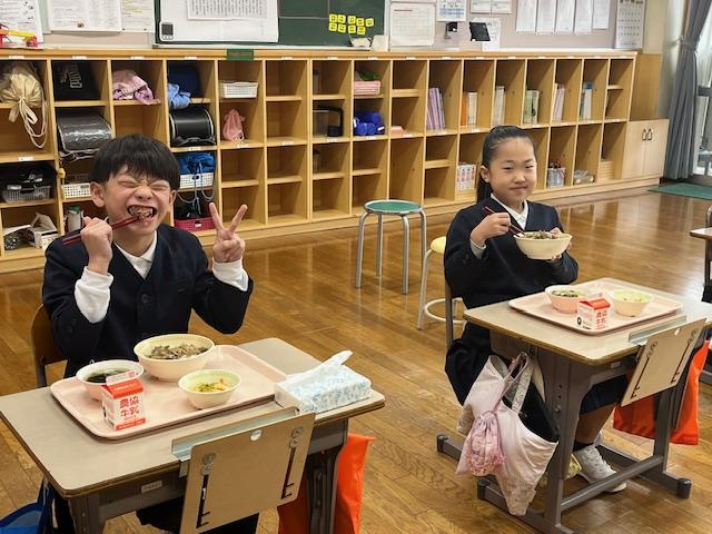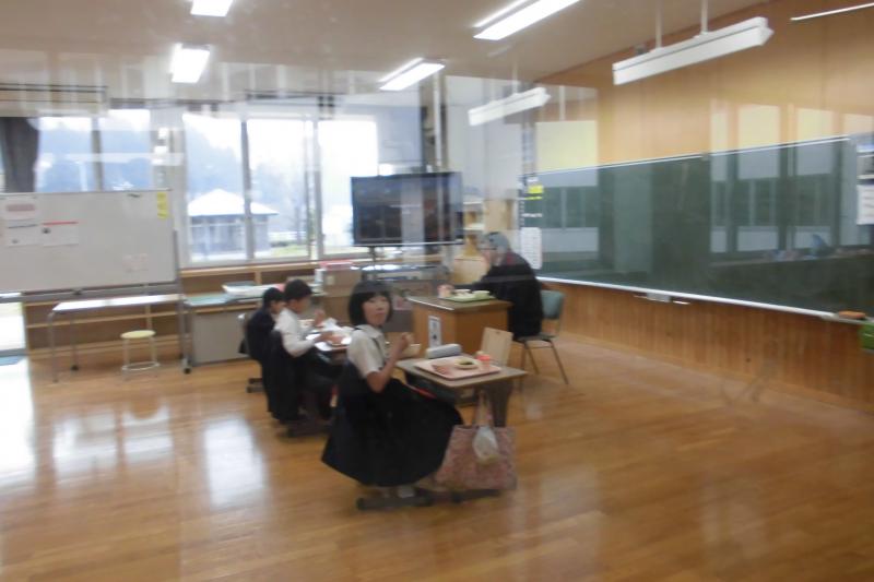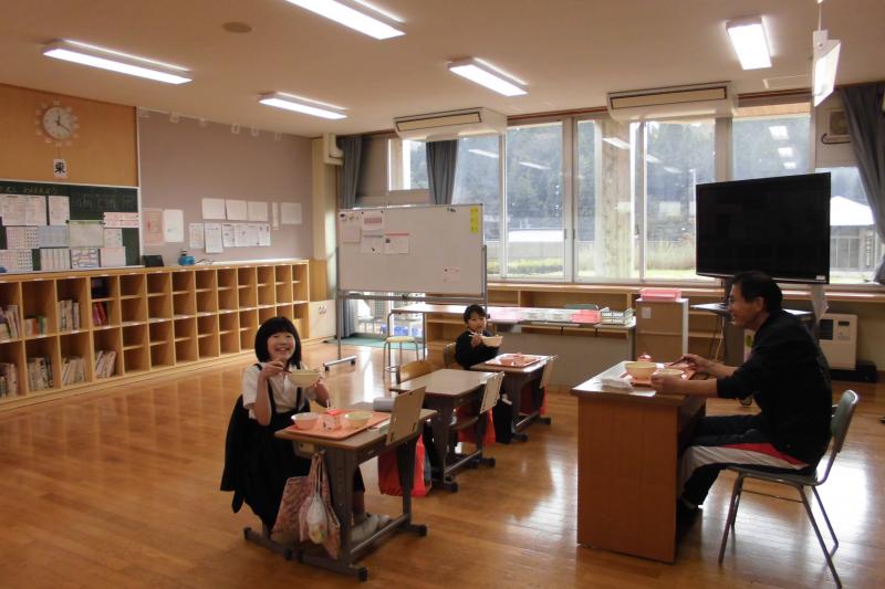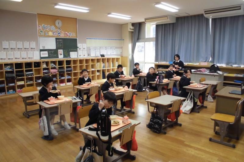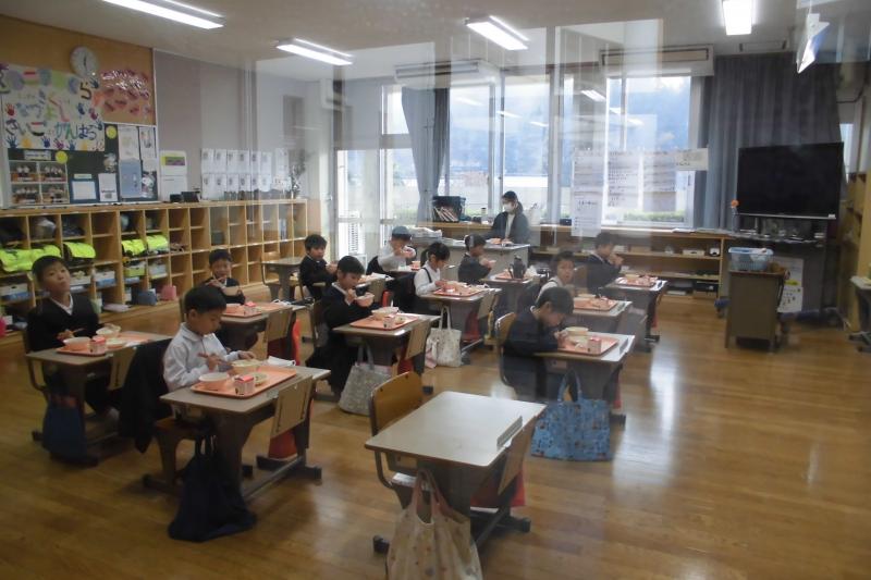 今日はインフルエンザに罹った児童が多かったため急遽、教室でたべることになりました。
