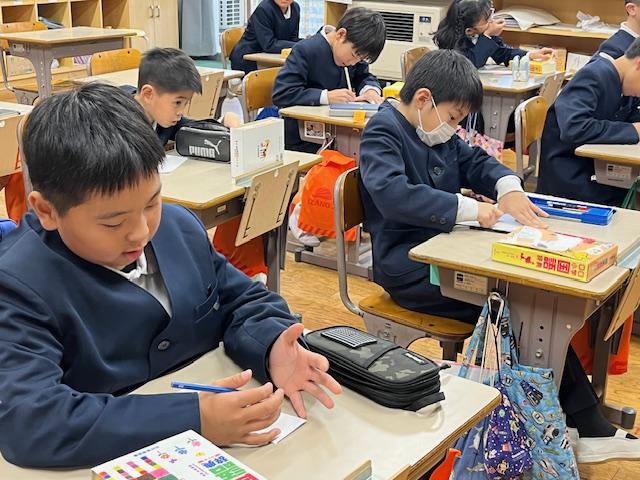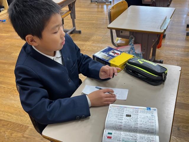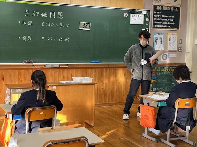 今日、5年生は1時間目と2時間目に県評価問題にチャレンジしていました。教科は、国語と算数です!