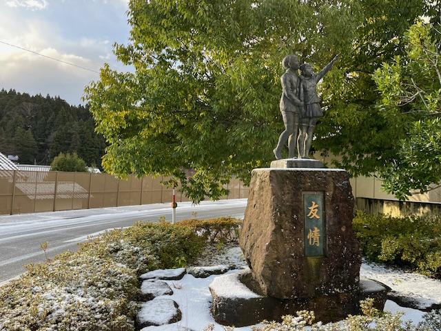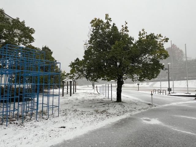 柳田小学校の周りは、白銀の世界になっております(^^♪
