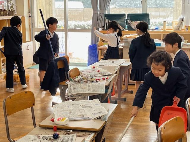 床に散らかったゴミを協力して集め、掃除までしていた1年生です。スゴッ!