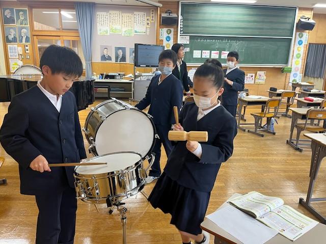 4年生は、3人1組で音の強弱を意識して音楽づくりに取り組んでいました(^^♪