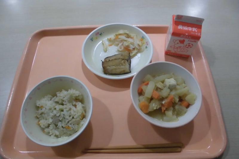 鶏ごぼうごはん ぶりの照り焼き風 大根なます 含め煮 牛乳