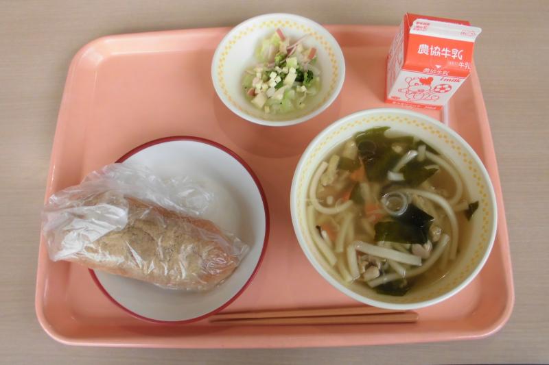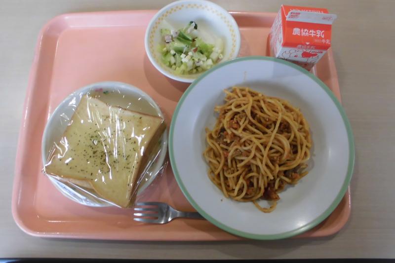 コッペパン スパゲティミートソース 中華スープ 牛乳