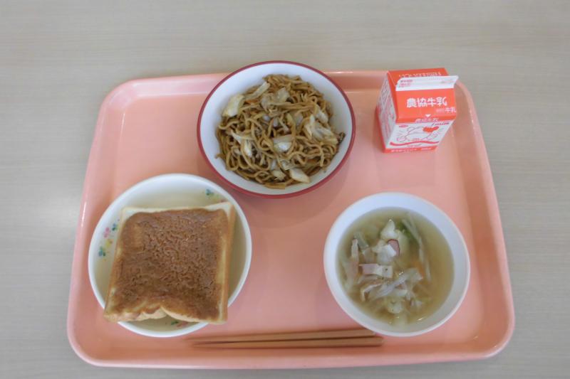 ガーリックトースト コーンサラダ いなりうどん 牛乳