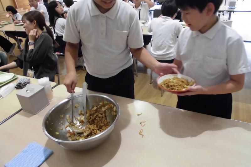 1年生は給食当番が代わりました。上手に配りや盛付けをしていました。頼もしいですね。