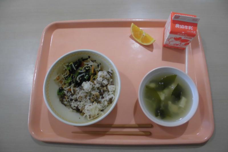 ひじきごはん 五目きんぴら もやしのみそ汁 牛乳