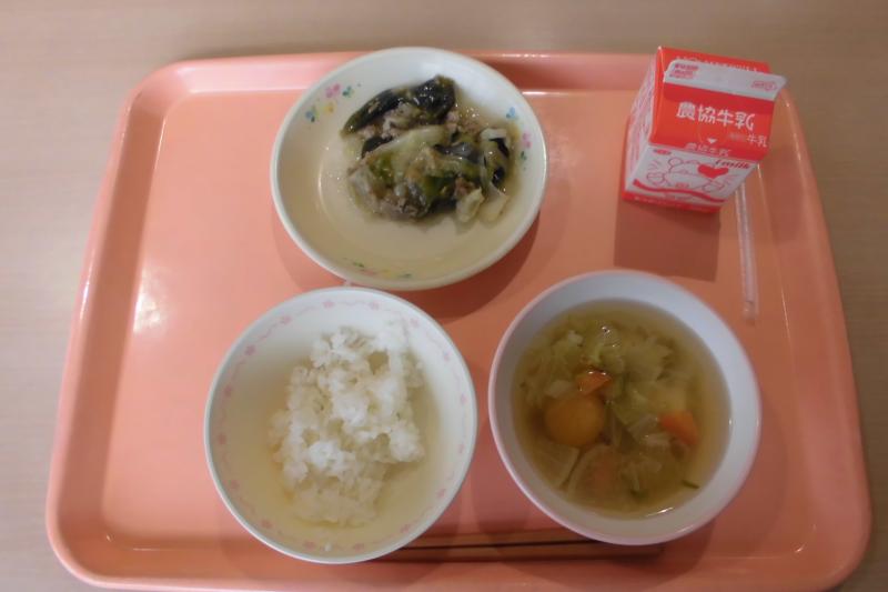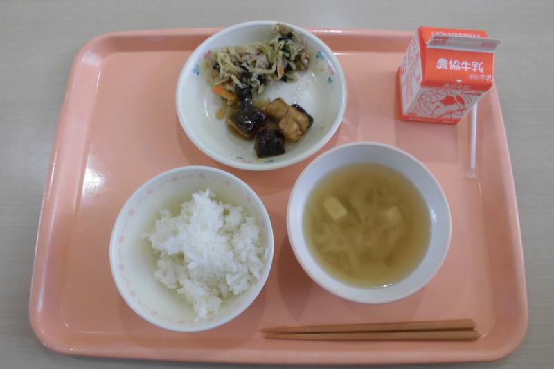 ごはん なすの肉みそ炒め お月見汁 牛乳