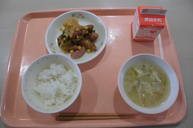 ごはん ポテトとウインナーのケチャップ炒め とり野菜 牛乳