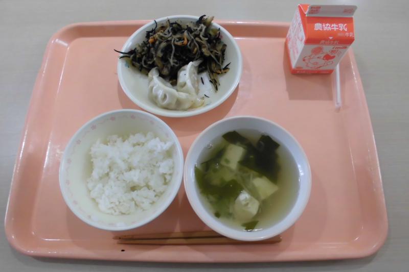 ごはん 焼きぎょうざ ひじきの炒り煮 すまし汁 牛乳