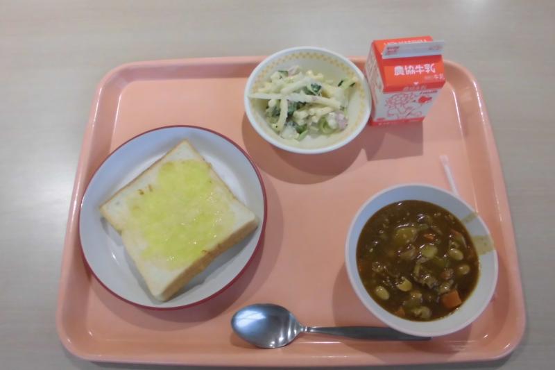 ハニーチーズトースト マカロニサラダ カレービーンズ 牛乳