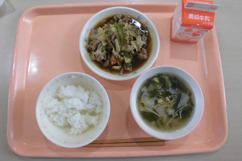 ごはん ひじきのマリネ すき焼き風煮 牛乳
