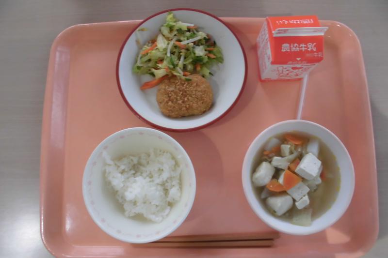 ごはん コロッケ ごま和え 豚汁 牛乳
