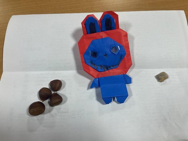 2つ目。ちょっとミャクミャクに似ている(?)ような折り紙。複雑な折り方をしてプレゼントしてくれました。