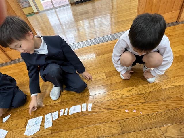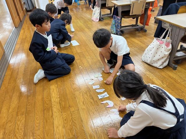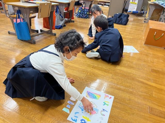上手に並べている1年生。算数の時間に数の勉強をしていますが、それが活かされていましたね(^^♪