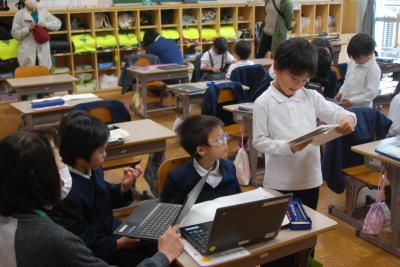 4年生算数「角の大きさ」の学習です。180度を超える角度をどのように測定すればいいかを考えました。タブレットや分度器など自分で考え、友達と交流しながら学習を深めました。