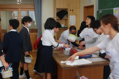 こころスマイルプロジェクトの皆さんから、1~4年生に駄菓子をいただきました。また、以前に学校で講演していただいた釜谷正宏さんから、鳩サブレーをいただきました。本当にありがとうございます!