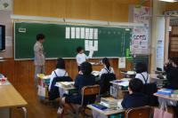 6年生担任の新谷先生と交流のある、北海道教育大学の本多先生が、東日本大震災のお話や、サモアで算数を教えていた時の様子をお話してくださいました。