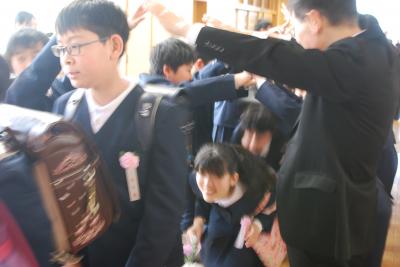 3月18日、時折小雪が舞う中での卒業式になりましたが、とても温かい卒業式でした。お世話になった卒業生を、下級生はとっても慕っており、涙する児童もいました。