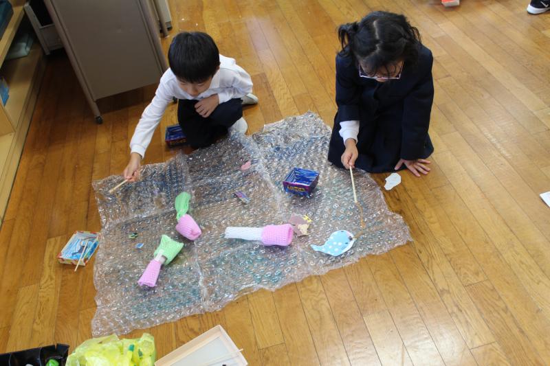 2年生が生活科で作ったおもちゃを1年生に遊んでもらう「おもちゃDIYリサイクルパーク」を開催しました。1年生がたくさん「楽しかった」と感想を話してくれ、2年生も達成感を感じ喜んでいました。