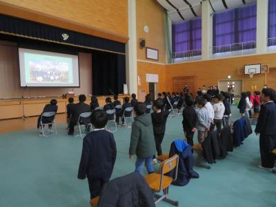 2月28日(水)6年生を送る会が行われました。どの学年も準備期間が短い中、工夫を凝らした内容を発表してくれました。特に5年生は、出し物の準備と全体の運営に準備と大変だったと思います。