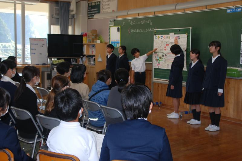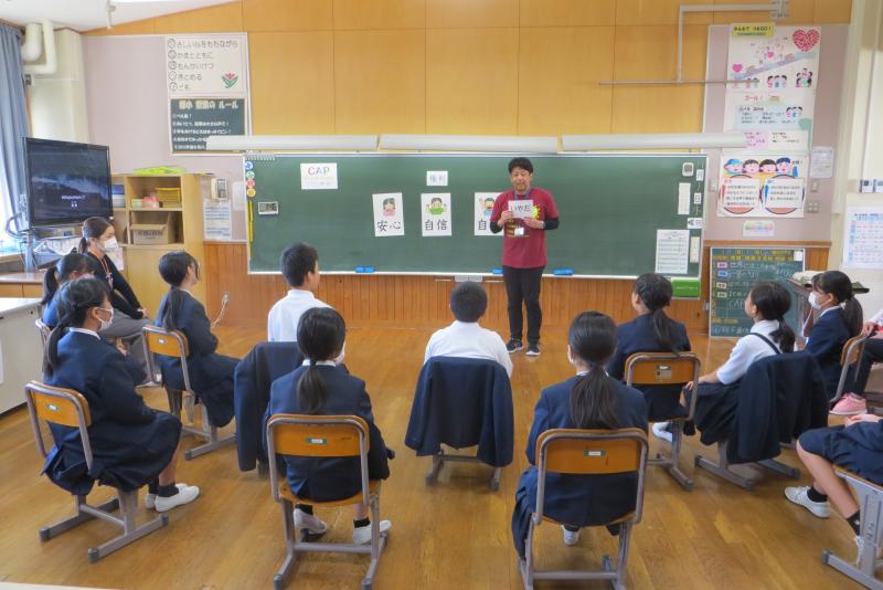 スクールカウンセラーの紺谷先生に「心の授業」で言葉遣いについて授業をしてもらいました。これからも「とげとげ言葉」に気をつけ、「ほんわか言葉」でいっぱいにしながら安心・安全な教室を作っていきたいですね。