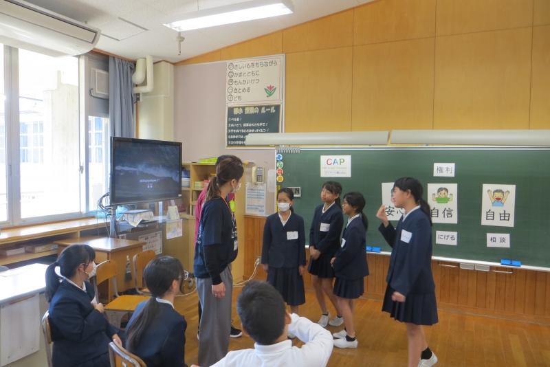 4年生は親子分かれて、「CAP講座」です。今年も丸岡先生とスタッフの皆さんから、子どもがいじめ、虐待、体罰など様々な暴力から自分の心と体を守る方法を、ワークショップ形式で学びました。
