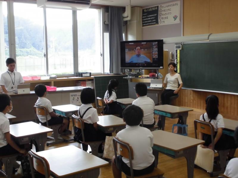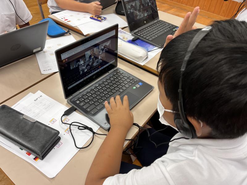 5年生と6年生が、一人一台端末を使って、外国人の先生と1対1で会話の練習をしました。最初は戸惑ったようでしたが、「楽しかった」という声も多くありました。