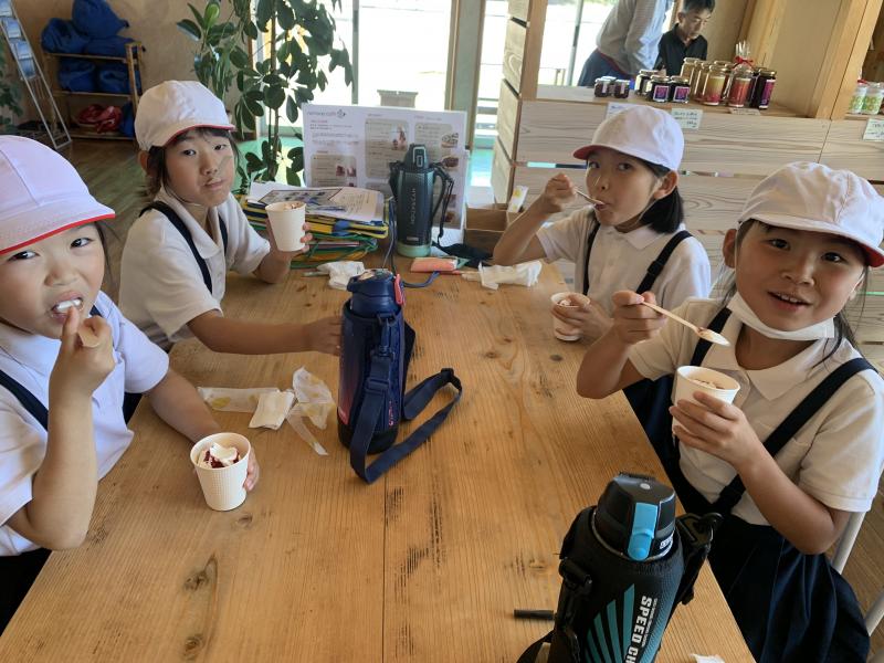 3年生の社会では、地域に見られる生産や販売を学習する単元があります。柳田の産物と言えばブルーベリーです。今回、のとファクトリーさんを見学させていただきました。大きなブルーベリーを採ったり、アイスクリームをいただいたりして、とても勉強(?)になりました。