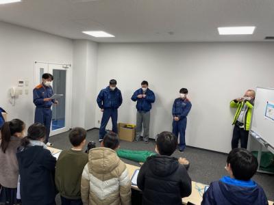 本日、3年生は社会科の学習で、能登消防署へ見学に行きました。奥能登にどれくらい消防署があるかや、はしご車や化学消防車はあるのかなどの質問に答えていただきました。
