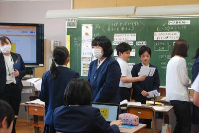 本日、6年生の算数で研究授業が行われました。児童が主体的に学び、友達と学び合いながら問題を解決できるようになってほしいと思います。そのために、どのような授業にするといいのか、先生方は研鑽に努めています。