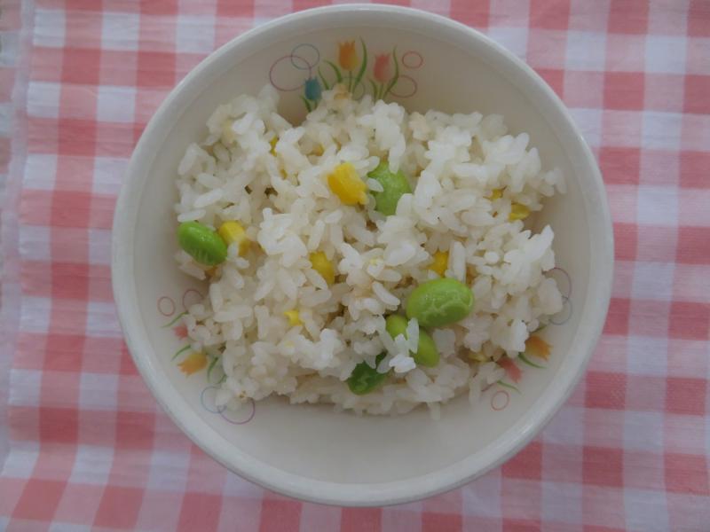 とうもろこしを切って、芯と一緒に炊き込みました。自然な甘みがおいしかったです。