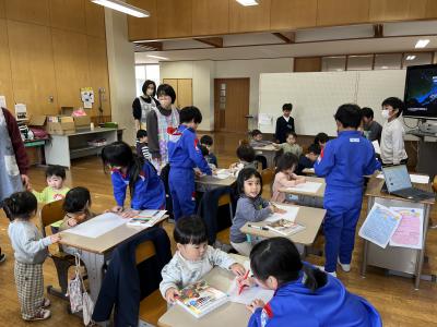 2年生が、保育所の園児と交流をしました。どんなことをするかも、2年生が考え、保育士さんにも助けていただきながら楽しく交流することができました。小学校では上級生にお世話になる側ですが、今回はとてもたくましく感じました。