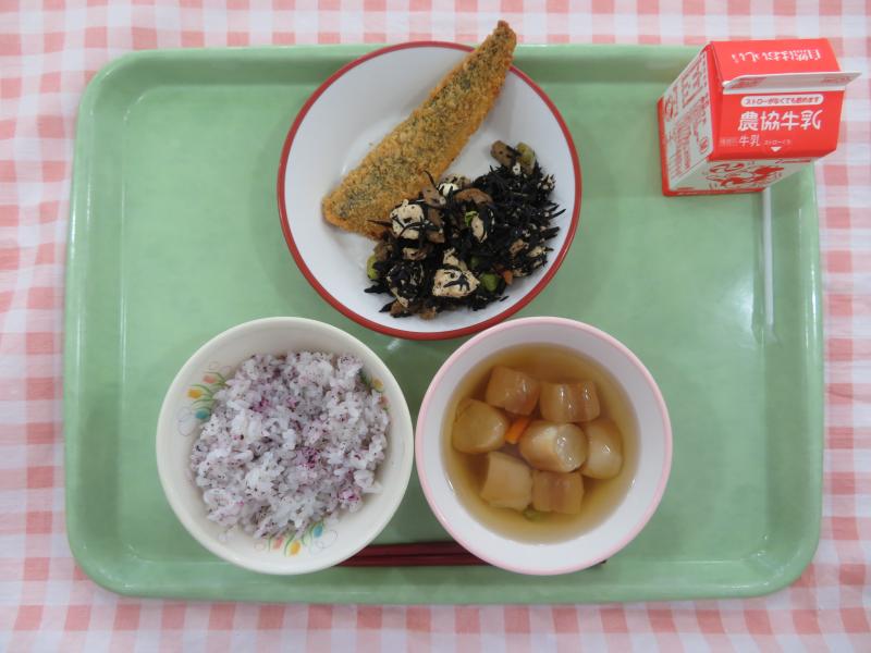 6月4日~10日は「歯と口の健康週間」です。今日は、大豆や切り干し大根、根菜類など噛み応えのある食材を使用したかみかみ給食にしました。