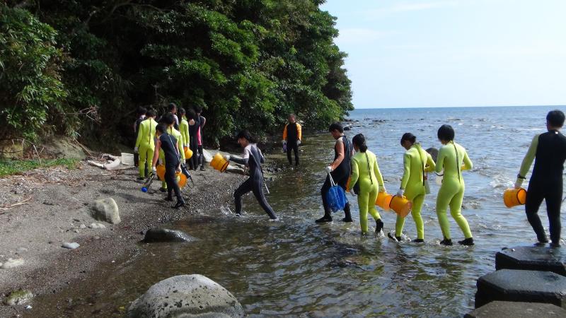 のと海洋ふれあいセンターにて、6年生は「パワー磯観察」を体験してきました。あまり着ることのないウエットスーツに身をまとい、磯辺より少し深い海の生き物を採取し観察しました。