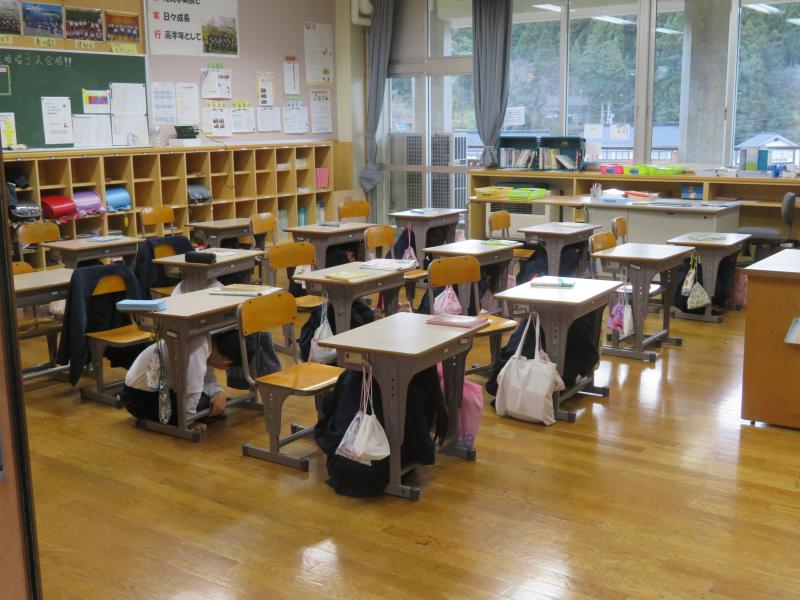 11月11日は町の総合防災訓練の日です。本校も、地域住民の皆さんと一緒に避難訓練や「防災スリッパ」づくりを体験しました。中学生は非難された方が使用するパーテンション(間仕切り)作業していました。
