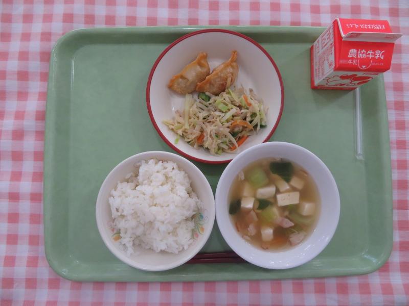 ごはん キャベツと厚揚げのみそ炒め ウインナースープ 牛乳