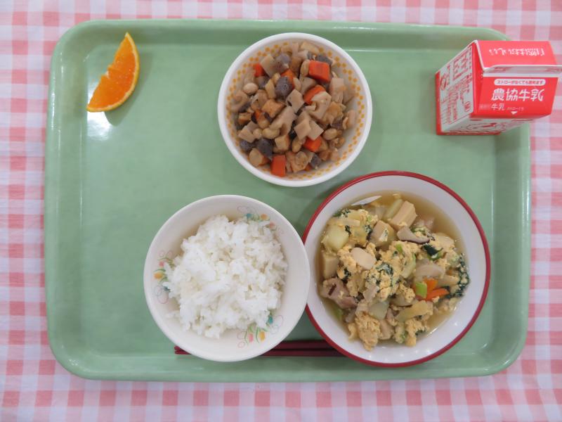 ごはん 鶏肉とれんこんのさっぱり炒め みそ汁 牛乳