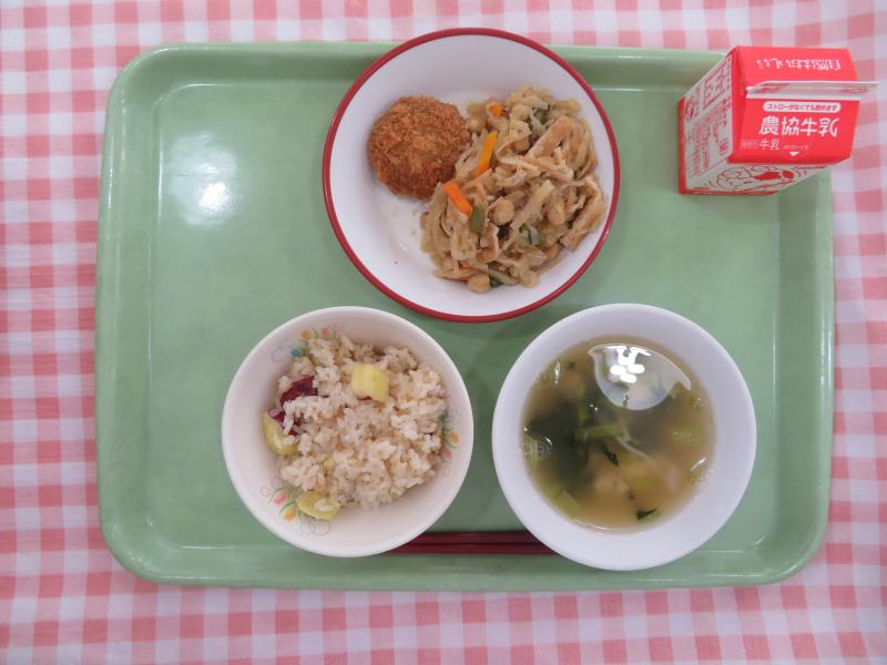ごはん ちくわの磯辺揚げ ひじきの炒め物 さつま汁 牛乳