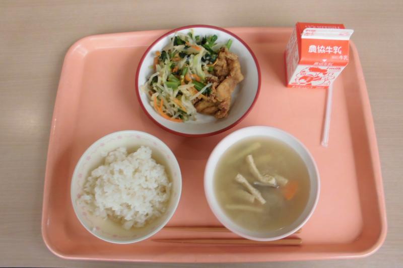 ごはん 揚げぎょうざ切り干し大根の含め煮 なめこ汁 牛乳