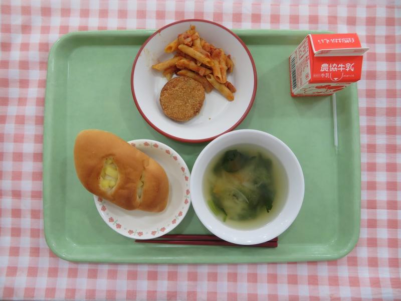 ピザトースト マカロニサラダ パンプキンシチュー 牛乳