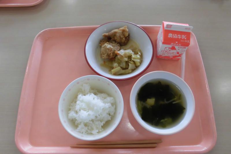 ごはん 揚げぎょうざ切り干し大根の含め煮 なめこ汁 牛乳
