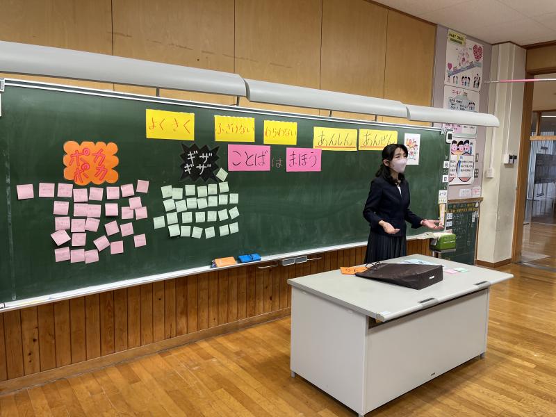 スクールカウンセラーの紺谷先生に「心の授業」で言葉遣いについて授業をしてもらいました。これからも「とげとげ言葉」に気をつけ、「ほんわか言葉」でいっぱいにしながら安心・安全な教室を作っていきたいですね。