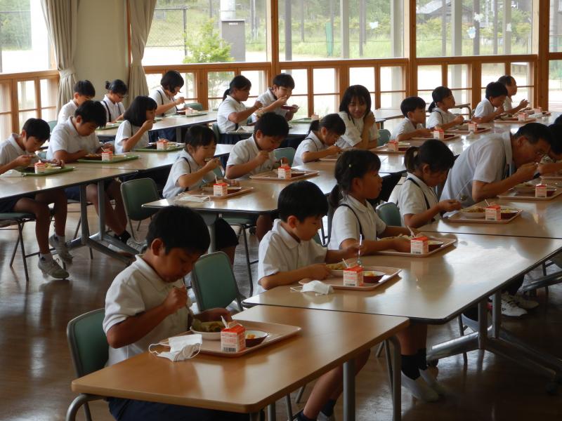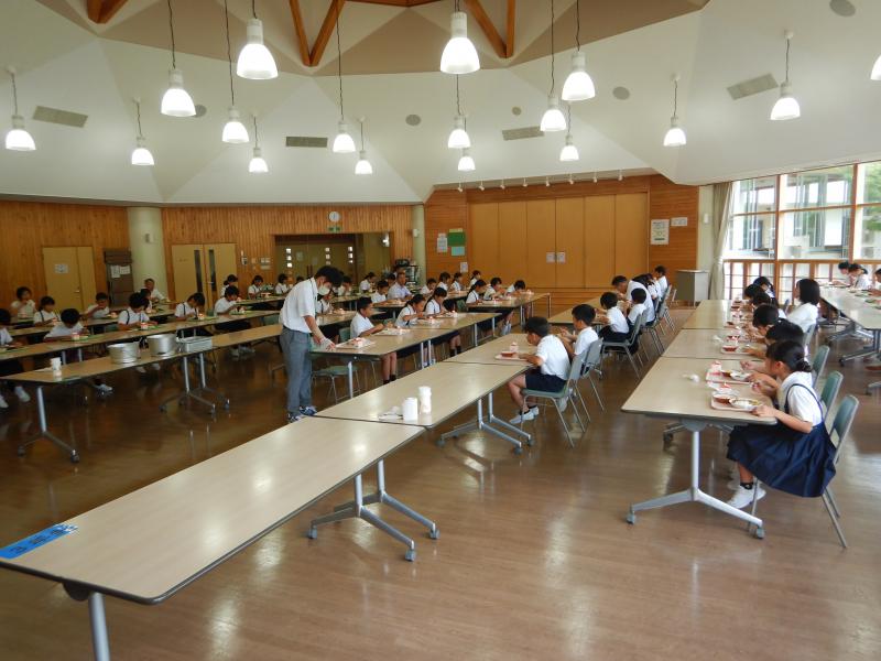 2学期からは3・4年生もランチルームで給食を食べることになりました。やっぱり、大勢で食べるとおいしく感じるのはなぜでしょう?