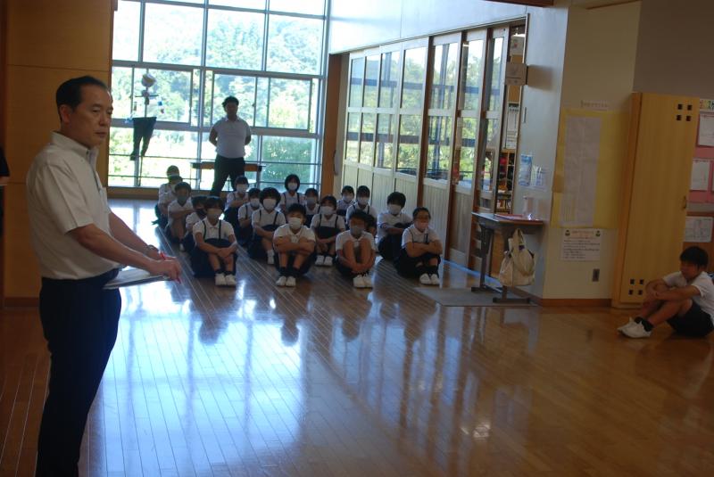 本日、水害の避難訓練をしました。柳田地区は危険性が低いと思われますが、大雨による土砂災害の可能性はゼロではありません。児童たちには学校だけでなく、家にいた場合の避難行動も考えてもらいました。