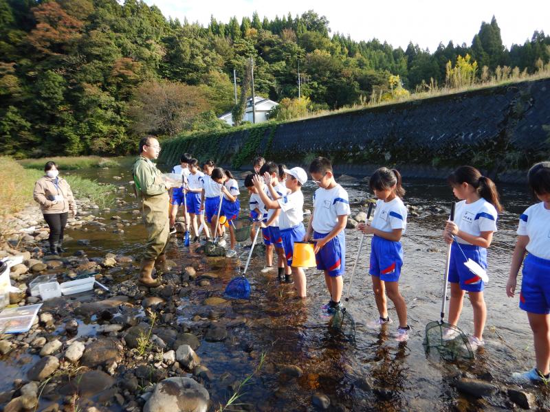 はじめに、能登里海教育研究所の松本先生の指導のもと、パックテストで川の水の汚れ具合を調べました。