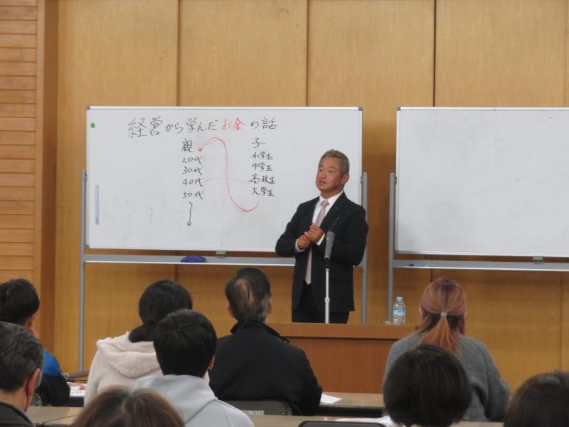 本日、柳田地区の出身で釜谷正宏氏による講演、「人生を自由に操る 最強パパの教え」が行われました。これまでの生い立ちから、会社を経営しながら子育てをした経験をお話しいただき、これからの時代を生き抜くために必要な教え(教育)について熱く語っていただきました。