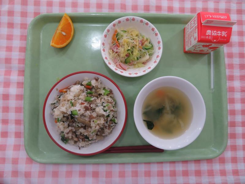今日は、時間内に食べ終わる児童が多かったです。ちくわの磯辺揚げが人気でした!