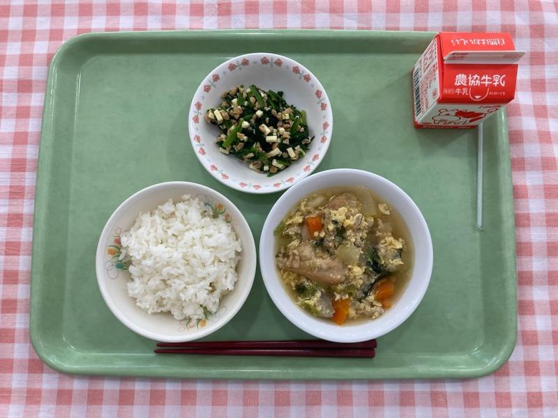諸説ありますが、冬瓜は夏に多く収穫されますが、冷暗所に保存しておけば冬まで保存可能なため、冬瓜と呼ばれるそうです。今日は、冬瓜も入った具材たっぷりの卵とじで食べました。今日の給食は特に1年生から人気が高かったようで「ぜんぶおいしかった!」という声がたくさん聞こえました!