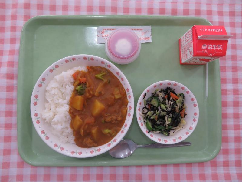 スタートのメニューはカレーライスです。思い返せば、3月の昨年度最後の給食もカレーライスでした。今年度も感染症予防のため、1・2年生は教室、3~6年生はランチルームで給食を食べます。テキパキと準備をし、しっかり食べている姿に頼もしさを感じました!感染症対策を行いながらの給食時間となりますが、今年も楽しい給食時間にしていきましょう!